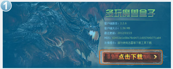 1.下载并更新魔盒。(魔兽盒子下载页面:http://wow.dw.yy.com/wowbox1/)