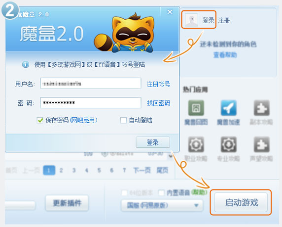 2.使用YY账号在魔盒上启动游戏。